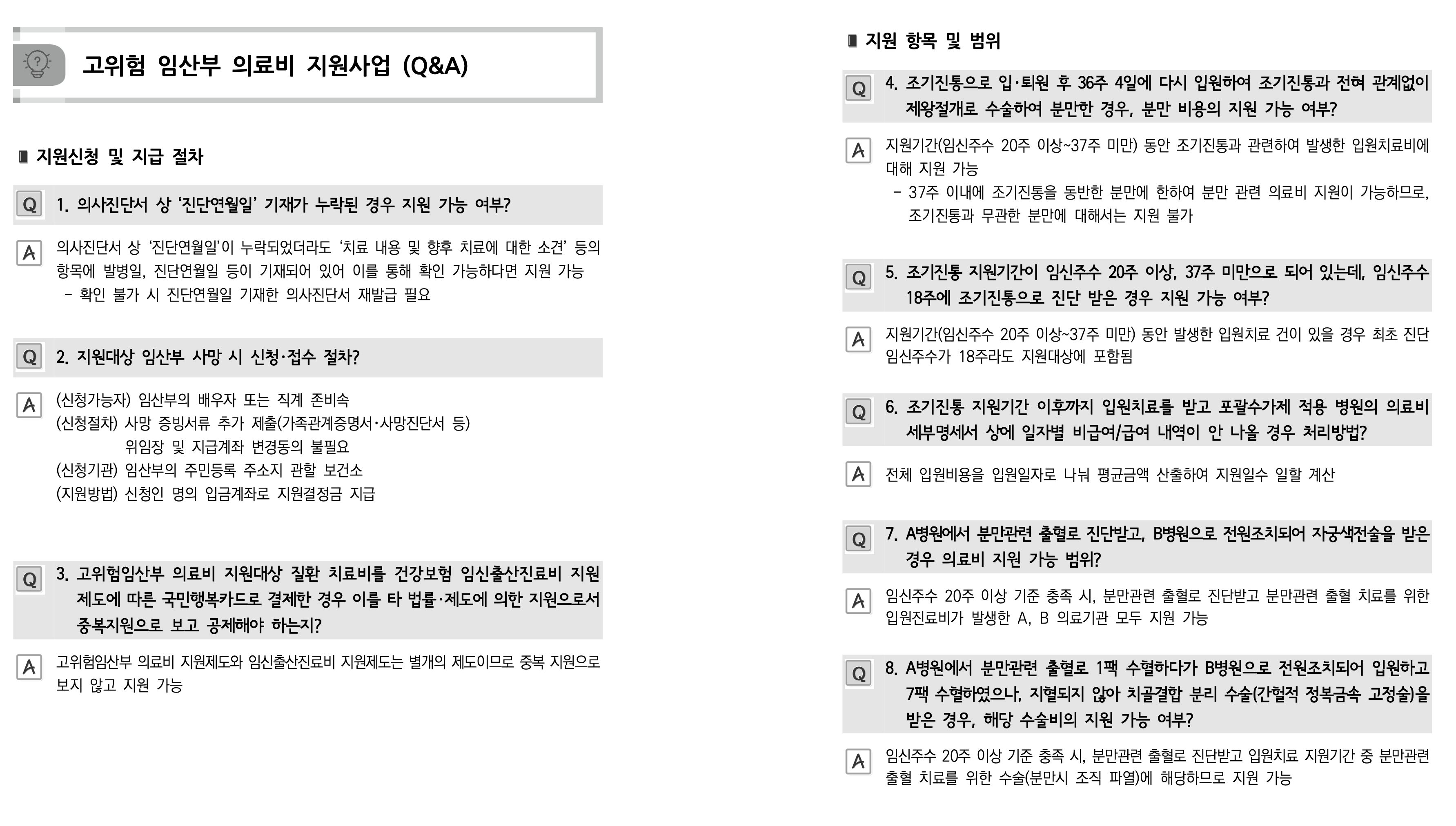 고위험임산부 의료비 지원제도와 임신출산진료비와 별개의 제도이므로 중복 지원이 가능합니다.