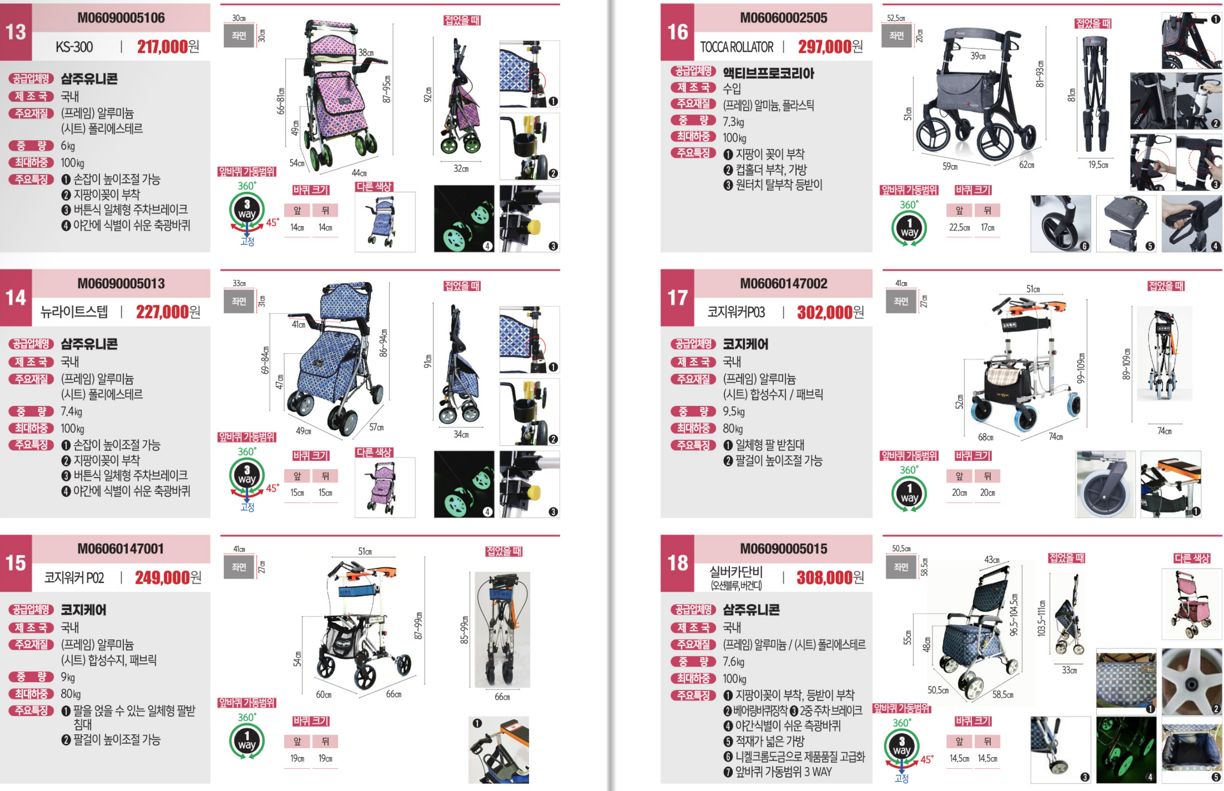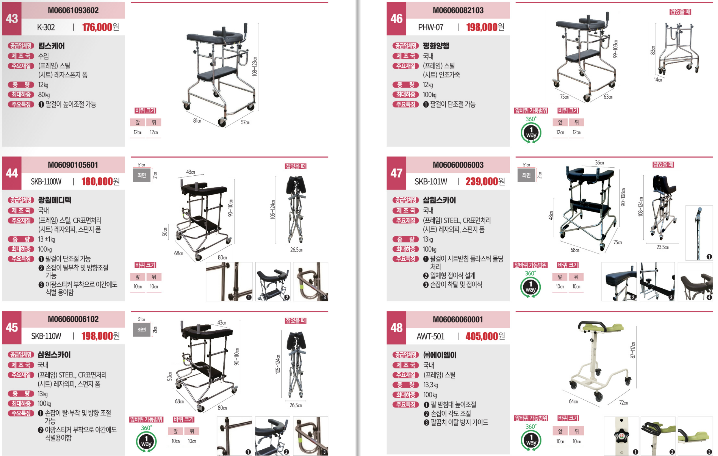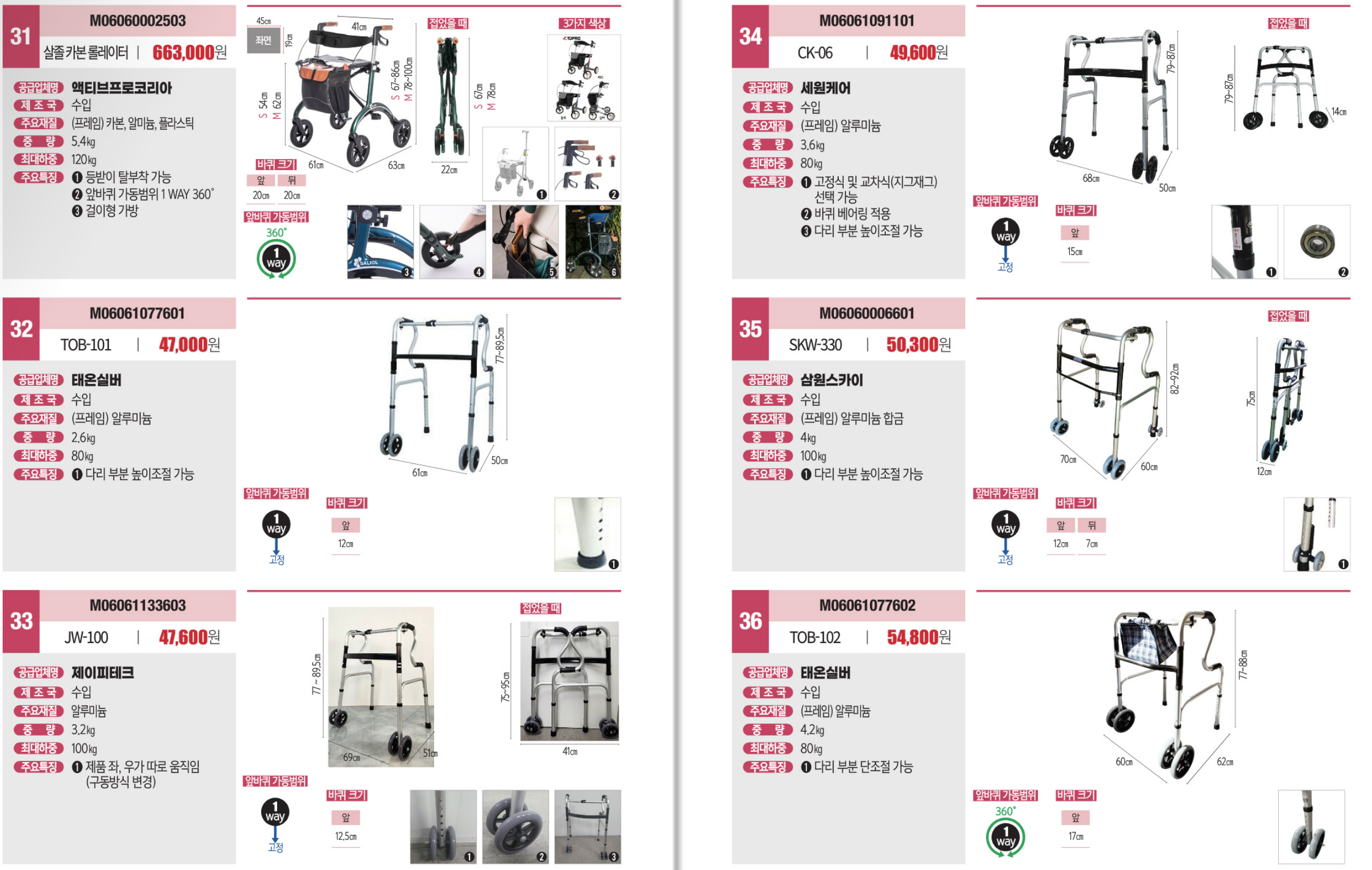 휠체어 겸 보행기로 보호시설용으로도 많이 사용되고 있는 노인워커는 휠체어 기능이 필요하거나 보호자가 같이 보행하는 분, 보행 시 힘들 때 잠지 않아 쉴 곳이 필요한 분, 앉아서 보행 훈련이 필요하시는 분들을 위해 만들어진 재활기구 및 편의를 갖춘 기구로 많이 사용되고 있습니다.