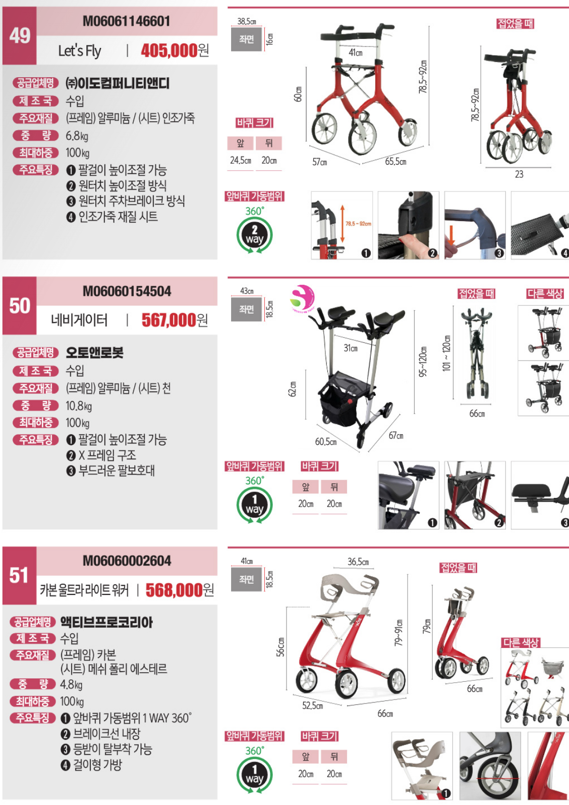 성인 보행기 같은 경우 보행이 불편하거나 실내 및 실외에서 혼자서 이동할 수 있도록 해주는 성인 보행기로 재활훈련 또는 일상생활에서 좀 더 편하게 거닐 수 있도록 해주는 기구입니다. 현재 우리나라에서 노인성 질환을 가진 분들에게 재가복지급여, 복지용구 용품을 지원 받을 수 있도록 해주는 복지서비스가 있습니다.