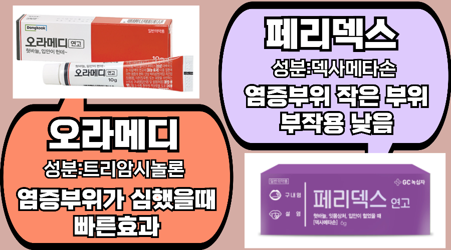오라메디 입안 연고 약은 트리암시놀론 성분이 들어가 있는데 염증 부위기 넓고 심한 경우 빠른 효과를 보실 수 있습니다.